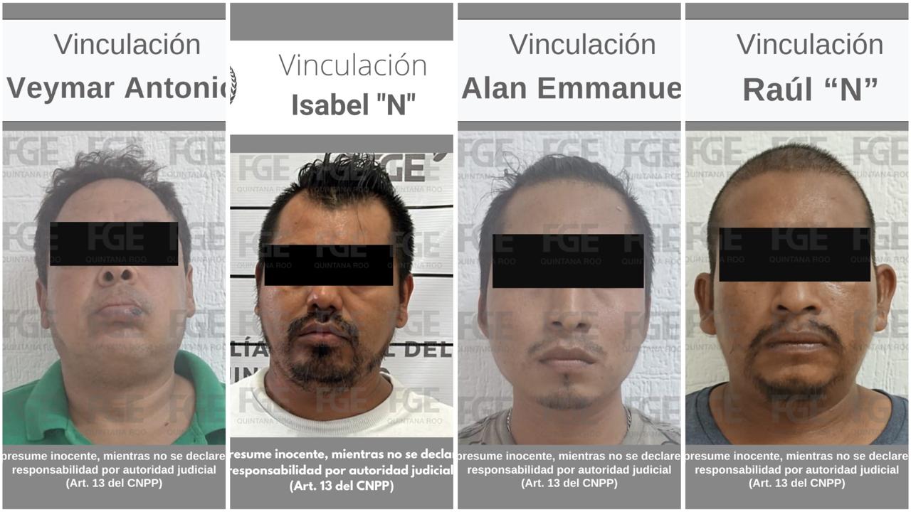 Benito Juárez.- Cuatro personas fueron vinculadas a proceso por su probable participación en un homicidio y un intento de homicidio, tras una serie de agresiones ocurridas en los primeros días de noviembre en la ciudad de Cancún. La Fiscalía General del Estado informó que los imputados, identificados como Raúl “N”, Alan Emmanuel “N”, Veymar Antonio “N” e Isabel “N”, enfrentan cargos graves ante los tribunales de control.