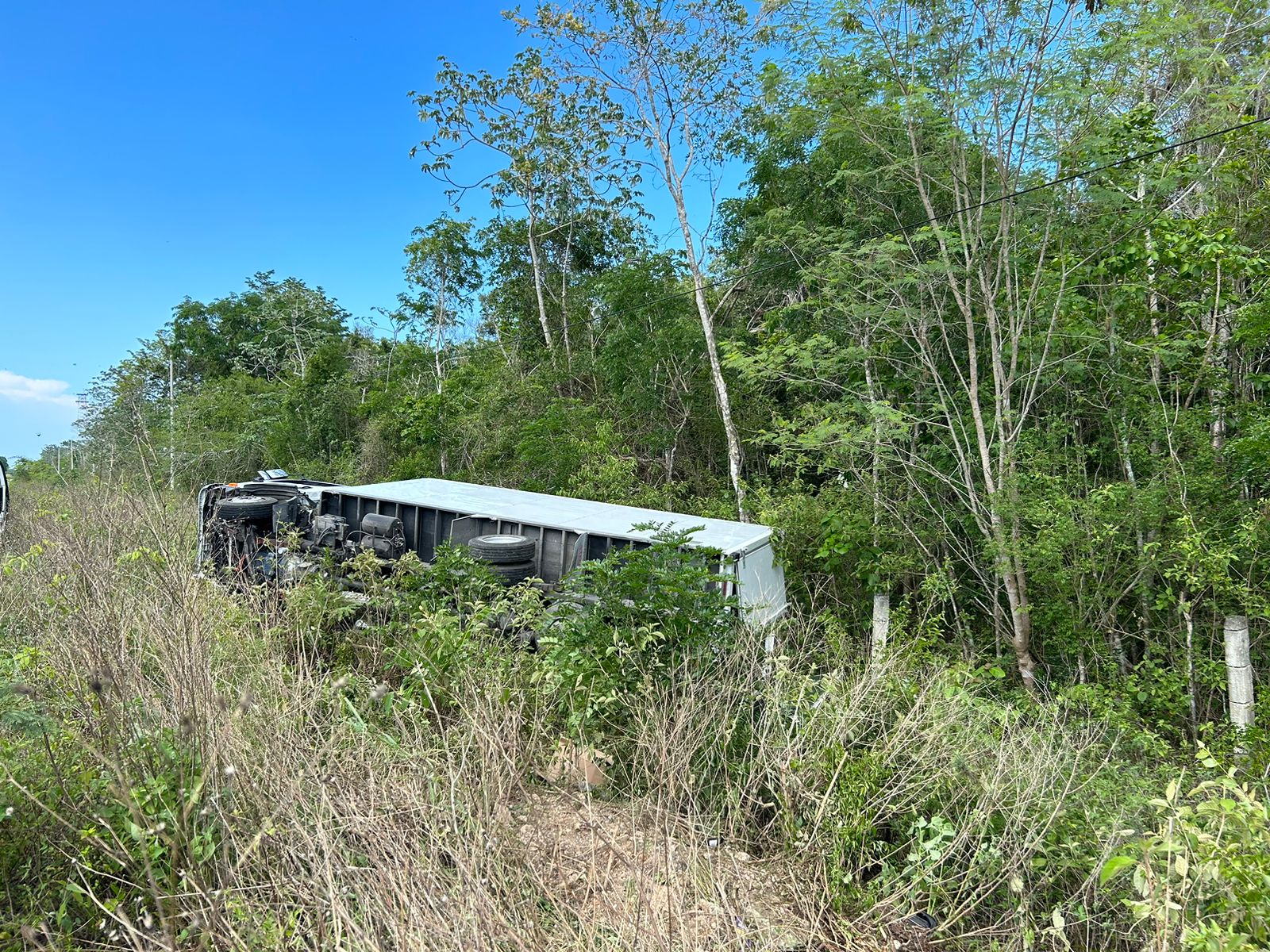 Felipe Carrillo Puerto.- Un camión que trasladaba un cargamento de cacahuates acabó semivolcado e internado en la maleza, debido a una falla mecánica, en la carretera federal 307, a unos 60 kilómetros al norte de esta cabecera municipal.
