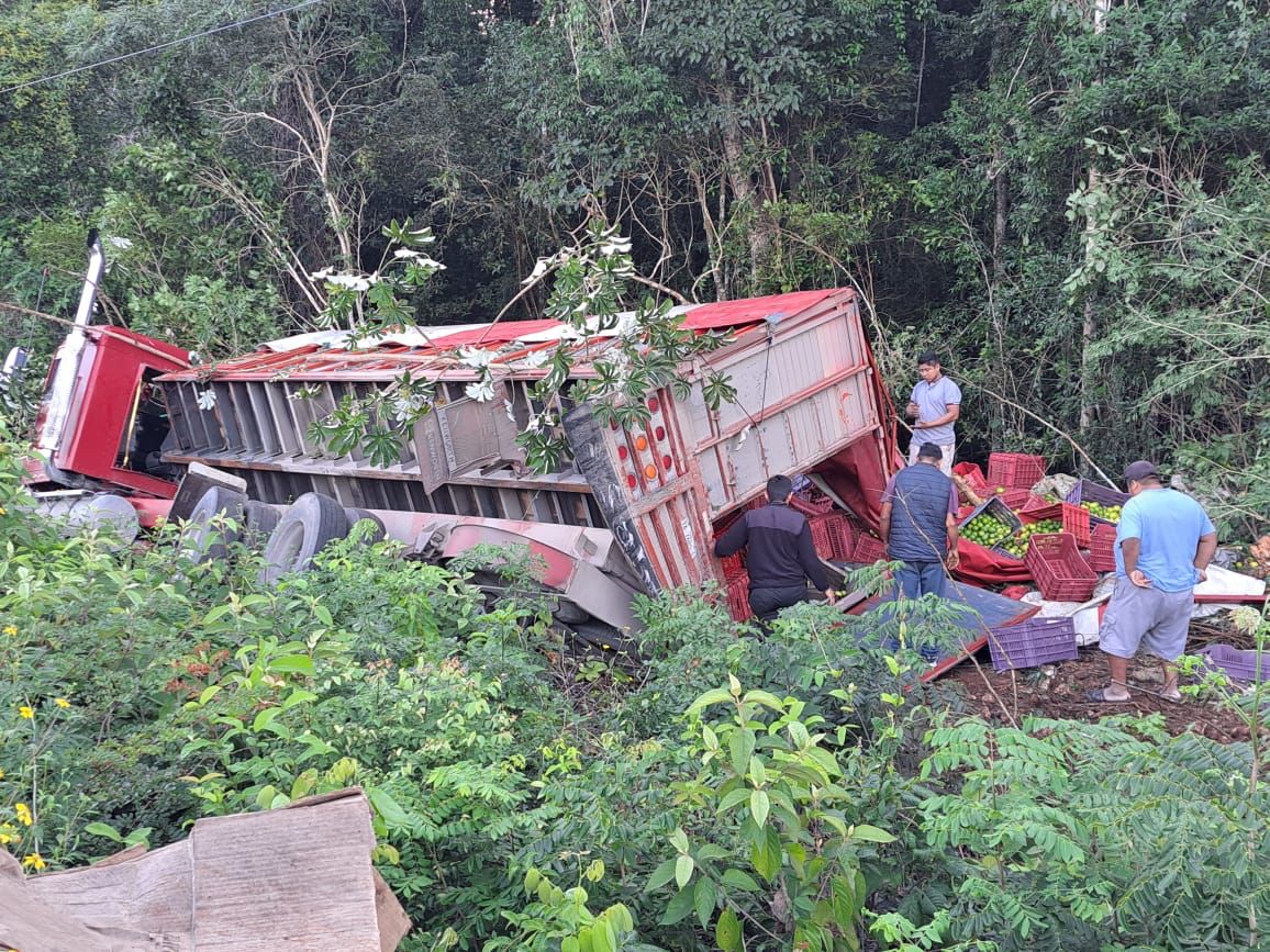 FELIPE CARRILLO PUERTO.- Un tráiler que transportaba frutas terminó volcado entre la maleza a la orilla de la carretera federal 307, en el tramo Felipe Carrillo Puerto-Tulum. No hubo lesionados.