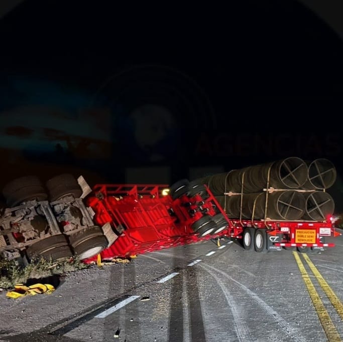 El tráiler transportaba a Cancún un cargamento de tubos de acero.