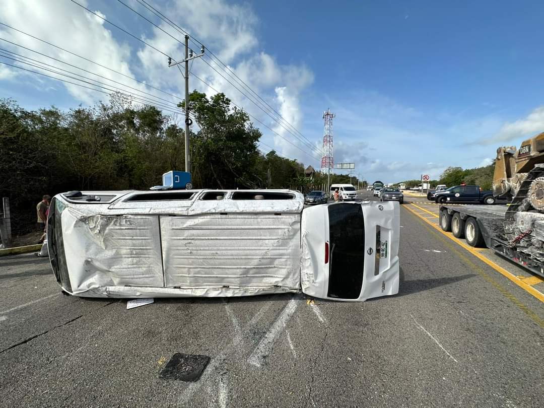 El vehículo iba con dirección al sur, con 10 turistas estadounidenses que había recogido de un hotel de Cancún, para llevarlos a un tour en Tulum. Sin embargo, por ir a exceso de velocidad, esta van se salió de control.