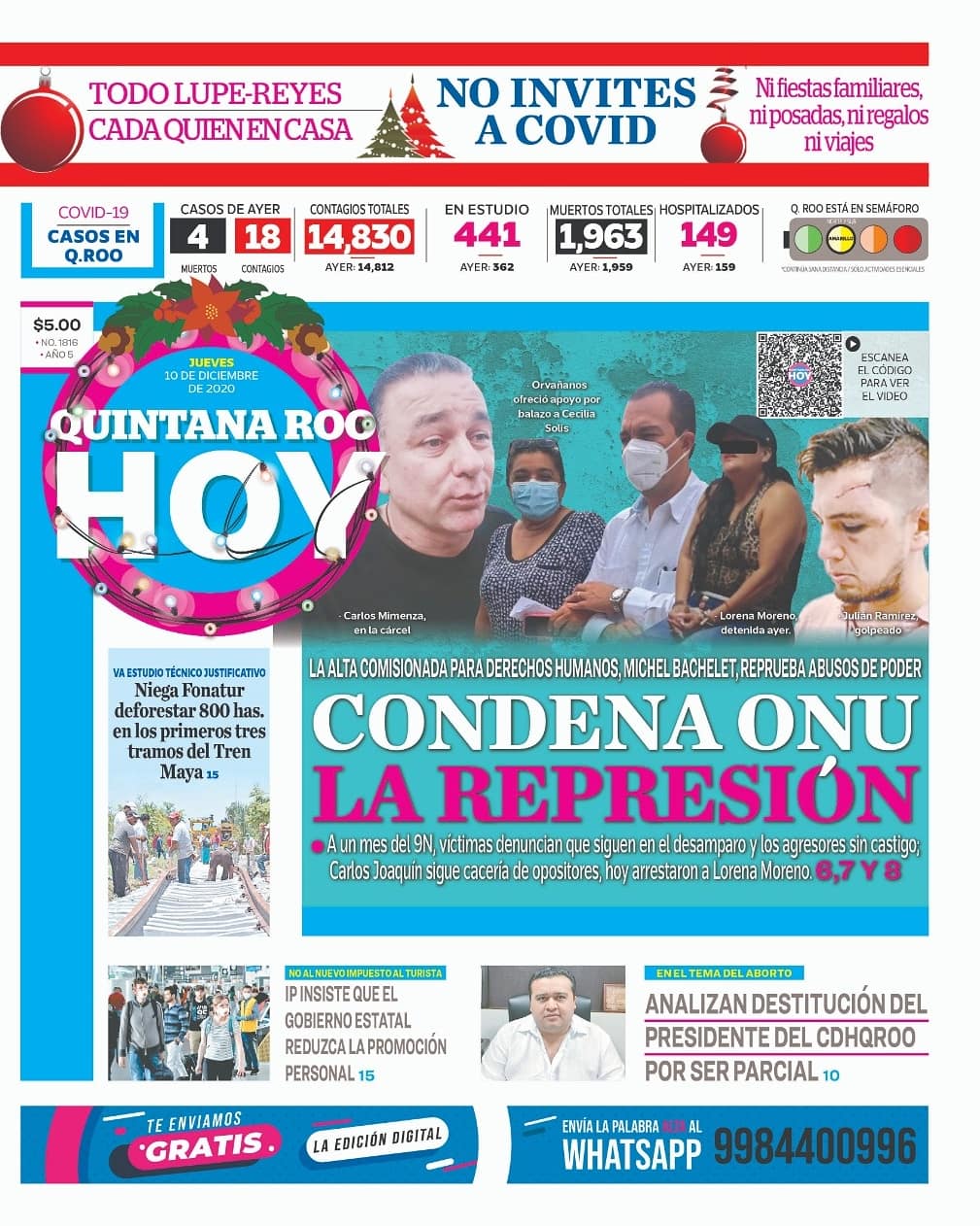 Cancún Condena ONU la represión; Michel Bachelet reprueba abusos de poder del 9N Alexis Montero10 diciembre, 2020