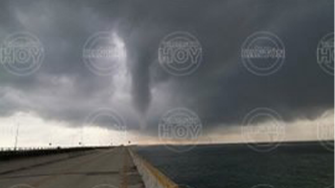 Geniales imágenes de tromba marina en Campeche