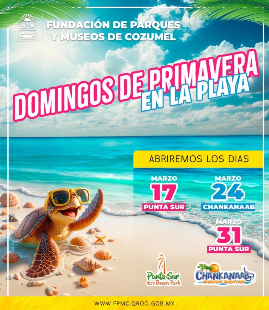 COZUMEL.- La Fundación de Parques de Cozumel (FPMC) abrirá los domingos el Parque Ecoturístico Punta Sur y el Parque Natural Chankanaab, durante el periodo vacacional de Semana Santa.