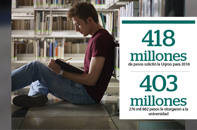 La institución educativa solicitó 418 millones de pesos para el 2018, que representa un incremento importante comparado con el 2017, pero se les otorgó únicamente 403 millones 276 mil 882 pesos; hay que recordar que el 50% lo aporta el gobierno del estado y la otra mitad la Federación.