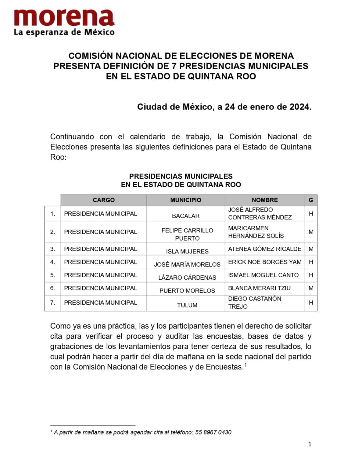 El comunicado emitido por la Comisión Nacional de Elecciones detalla la asignación de Diego Castañón Trejo como el candidato de la alianza respaldada por Morena en Tulum. Este movimiento estratégico refleja el compromiso del partido con la continuidad de la Cuarta Transformación en la región.