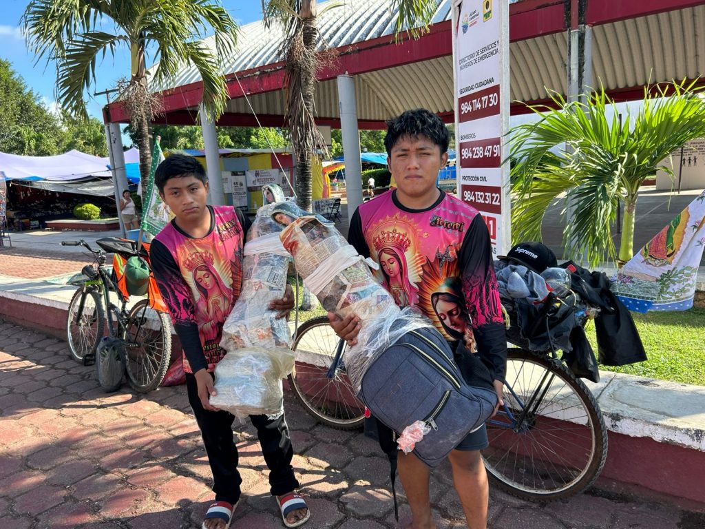 Kantunilkín.- Dos jóvenes de la ranchería de Nolo del vecino estado de Yucatán, explicaron que por ocho años de manera consecutiva acuden en la isla de Holbox a bicicleta para cumplir con su promesa en honor a la Virgen del Tepeyac.
